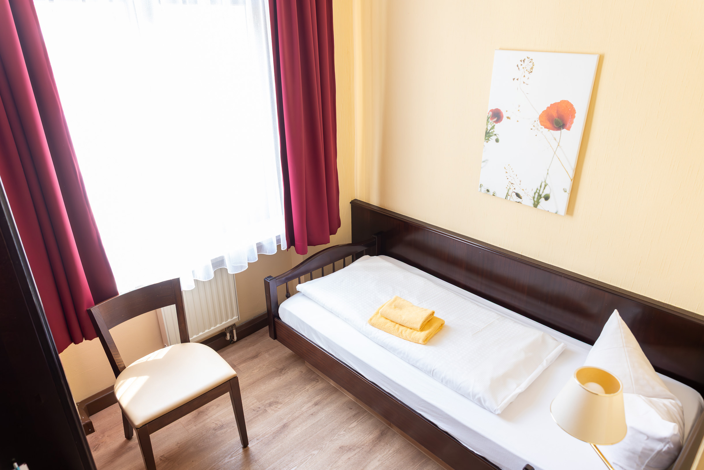 Ideal für Geschäfts- oder Alleinreisende. Unsere Einzelzimmer bieten Komfort auf kleinem Raum mit Dusche, WC, Fernseher, Telefon und kostenfreiem WLAN.